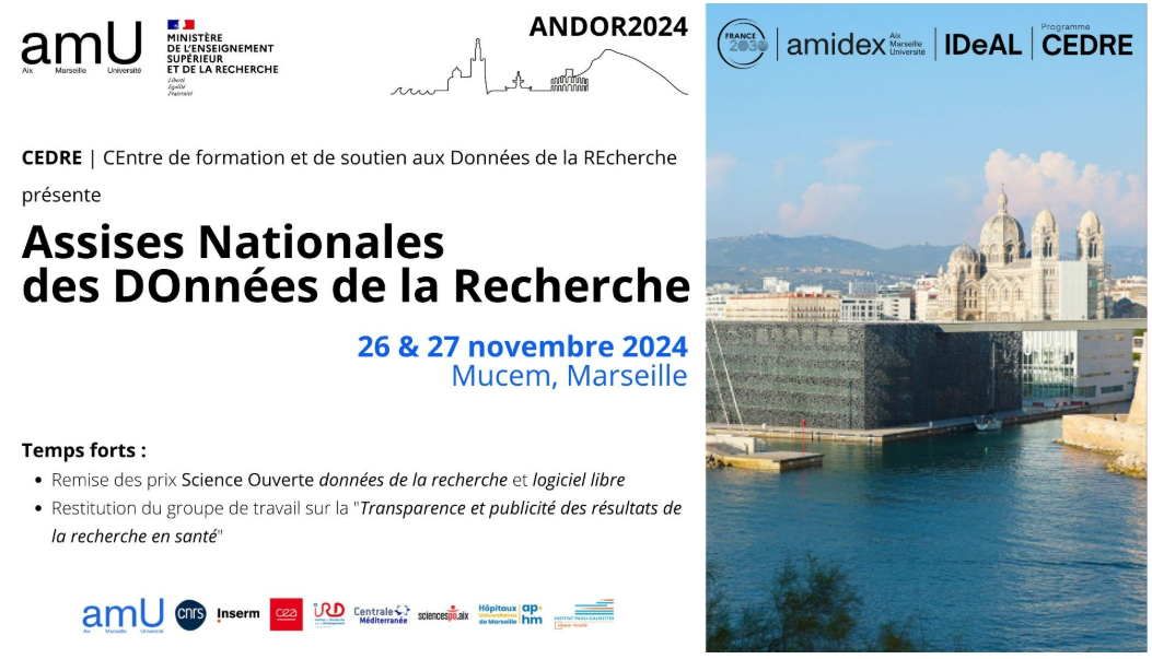 Le Ministère de l’Enseignement supérieur et de la Recherche et Aix Marseille université via CEDRE (CEntre de formation et de soutien aux Données de la REcherche) et son SCD (Service Commun de la Documentation) s’associent pour organiser les « Assises Nationales des Données de la Recherche ».